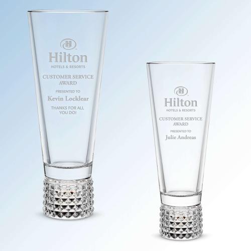 You and your recipient will love our Corsica Crystal Vase. The crystalline Corsica Vase features a tall, refined silhouette crafted from brilliant crystalline, delivering exceptional clarity and a clean, modern look. Its distinctive studded base adds texture and visual interest, catching light beautifully to create a subtle yet striking effect. Perfect for showcasing floral arrangements or standing alone as a decorative accent, this vase offers a sophisticated presentation for recognition or gifting.
