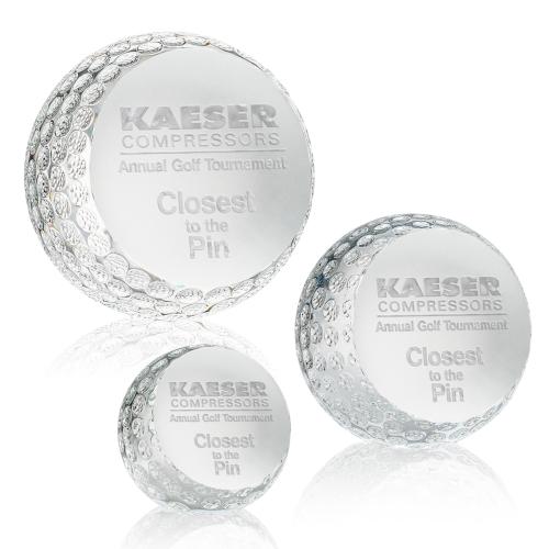 You and your recipient will love our Etched Crystal Golf Ball Award Paperweight. Capture the essence of excellence and dedication with the Etched Crystal Golf Ball Award Paperweight. Perfectly crafted to resemble an authentic golf ball, its optically clear crystal captivates with lifelike sparkling divots that catch the light, creating an exquisite display. Personalize this elegant piece with reverse etching that honors achievements or memorials, making it a standout addition to any desk or collection. Whether for accolades, milestones, or as a token of appreciation, this paperweight is an enduring symbol of recognition and success.