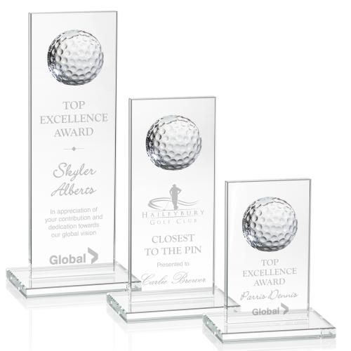 You and your recipient will love our Golf Crystal Globe Award with Custom Etching. Celebrate exceptional golf achievements with the Golf Crystal Globe Award, a stunning piece that embodies elegance and prestige. This award features a finely crafted 2-inch optical golf ball, perched gracefully atop a sleek vertical crystal upright, creating a striking and sophisticated silhouette. Its clear or green crystal base adds a touch of modern refinement, making it an ideal recognition piece for extraordinary accomplishments on the course. Perfect for honoring a remarkable stroke or a championship drive, this award offers customization options to add a personal touch, ensuring that each piece is as unique and memorable as the recipient's achievements.