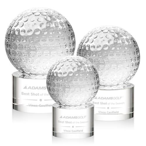 You and your recipient will love our Golf Crystal Globe Award on Marble Base. Elevate any golf event or celebration with the stunning Golf Crystal Globe Award on a Marble Base. This exceptional piece features a meticulously crafted optical crystal golf ball that beautifully captures and refracts light, offering an enchanting visual display. The award is elegantly perched on a marble base that provides ample space for personalization with a logo or name, making it a unique and cherished keepsake. Perfect for honoring the dedication and skill of golf enthusiasts, this award harmoniously blends precision and elegance, making it an ideal choice for tournaments or special occasions.