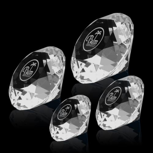 You and your recipient will love our Elegant Crystal Diamond Award. Introducing the Elegant Crystal Diamond Award, a stunning testament to achievement and prestige. Crafted from exquisite crystal, this award features a 2-3/8" diameter optical diamond, intricately cut to reveal a mesmerizing array of facets. These facets brilliantly reflect and refract light, creating a dazzling display of colors that captivate the eye. Perfect as a desktop or shelf memento, its small raised etching area offers the ideal space for personalization, allowing you to commemorate special moments or milestones with elegance. Available in various sizes, including 2-3/4", 3-1/8", and 4", this award is a versatile choice for a range of occasions. Celebrate excellence with this timeless symbol of success.