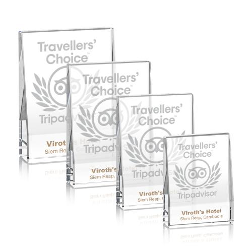 You and your recipient will love our Miranda Crystal Award - Elegant Recognition Trophy. Celebrate achievements with the Miranda Crystal Award, an elegant recognition trophy crafted from exquisite optical crystal. Perfect for honoring excellence, this striking award is available in four different sizes to suit any occasion. Each piece starts blank, allowing for personalized engravings and optional colorfill, making it unique to your event or recipient. Enhance its presence with an optional piano finish base, adding a touch of sophistication to this already impressive piece. Ideal for corporate events or personal accolades, this award is designed to shine and inspire, making every recognition moment truly memorable.